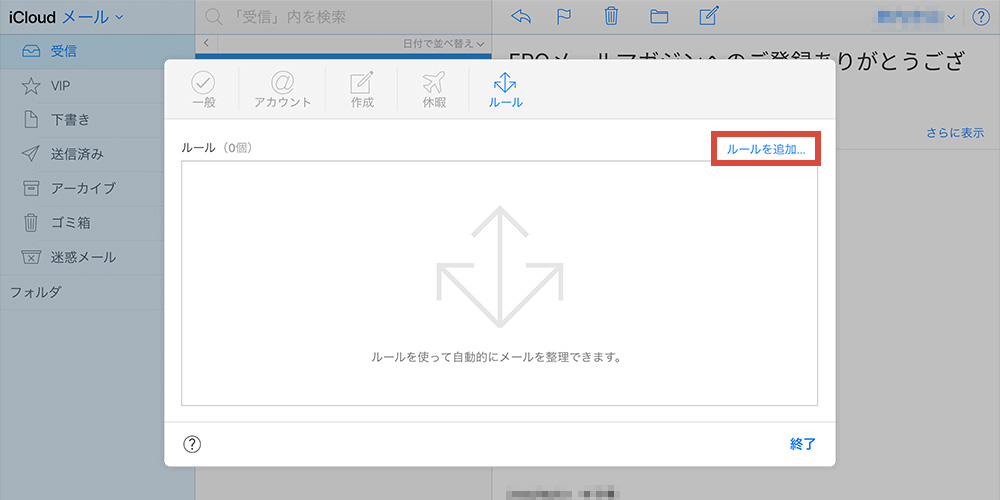 「終了」をクリックし、ルールの追加画面を閉じます。